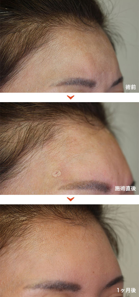 施術の説明:ヒアルロン酸を注入して額を丸くします