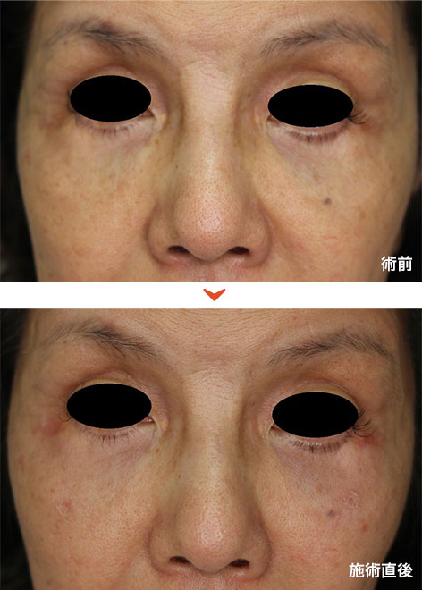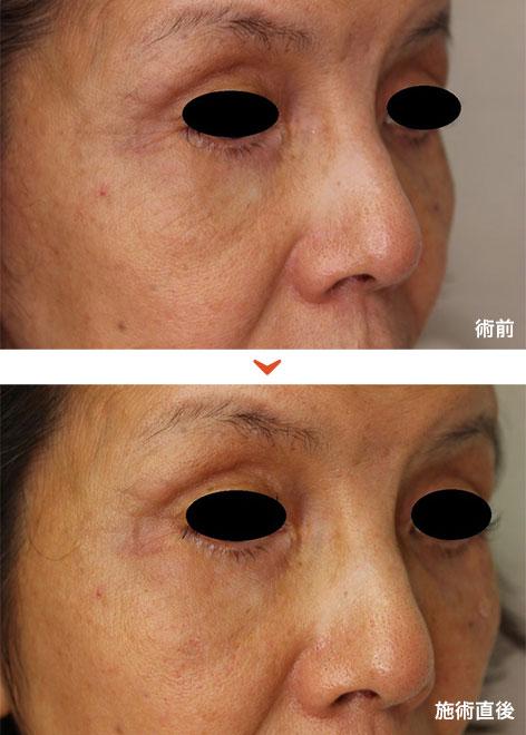 患者様は70代の女性です。CGスタイラーを1本目の周りに22Gのカニューレを用いて注入しました。チークトップも上がり、目の下の影とシワが改善しています。