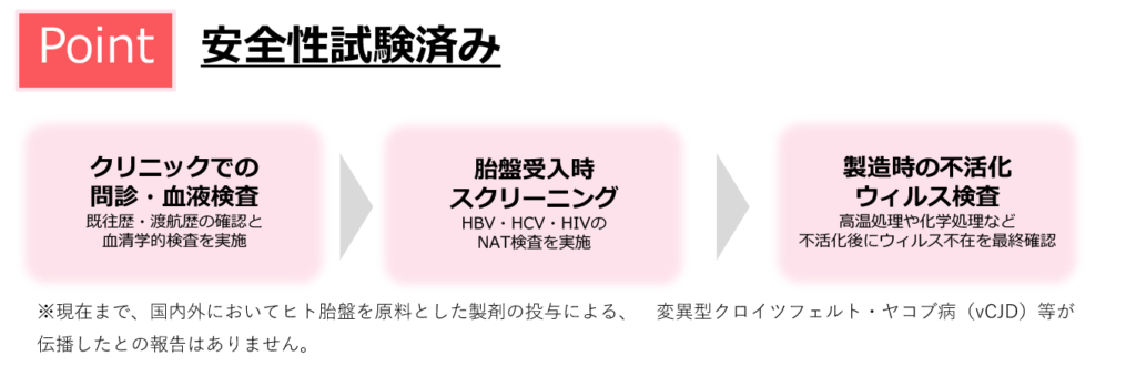 ※ヒューマンコラーゲン注入を受けた方は献血をお控えいただいております。製品自体のウイルスや病原菌に対する安全性は確率されていますが、未知の疾患に罹患する恐れが否定できないため、献血の制限をしていただいております。
